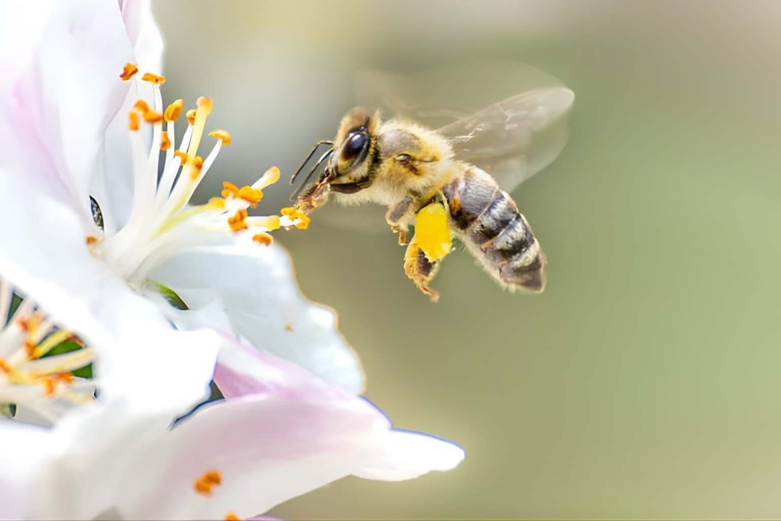 Honey Bees collect nectar from diverse natural flowers using their long tongue (proboscis), storing it safely for transport back to the hive.